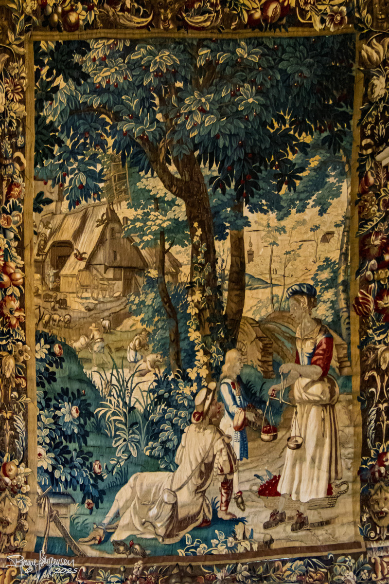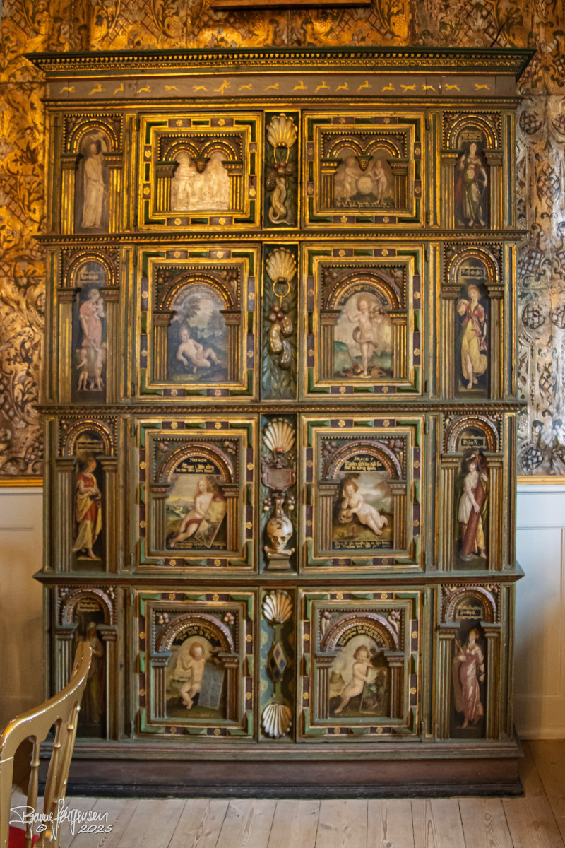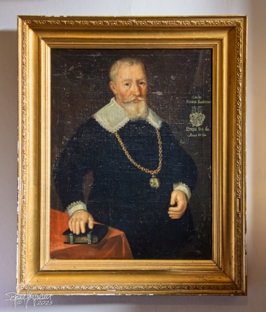 Vores rundviser, Sys Ehlers, førte os gennem slottets sale og stuer med gamle gobeliner, gyldenlæder tapet og interiør fra 1700-tallet og mange spændende malerier. Sys fortalte levende om familien Rosenkrantz og slottets spændende historie helt tilbage fra 1500 tallet. Vi fik mange historiske facts, nogle af de hyggelige anekdoter og vi blev “præsenteret” for de mest aktive spøgelser…