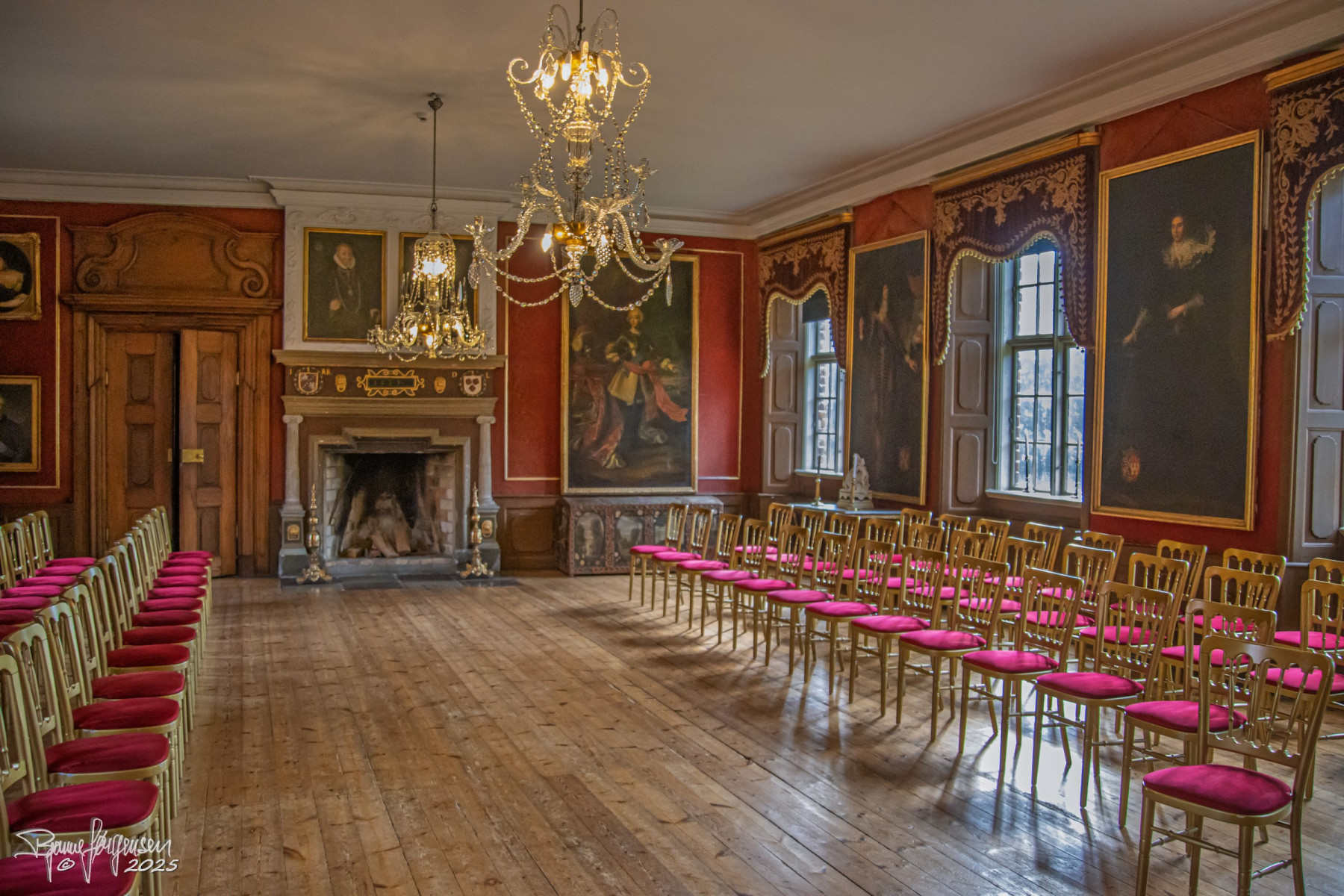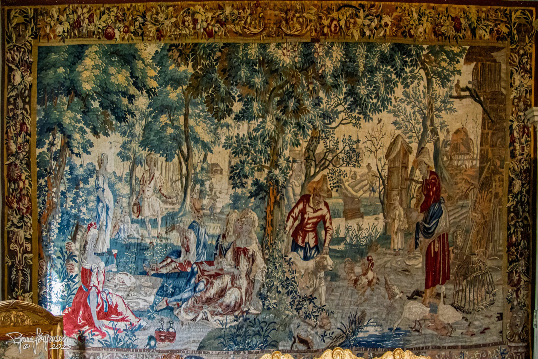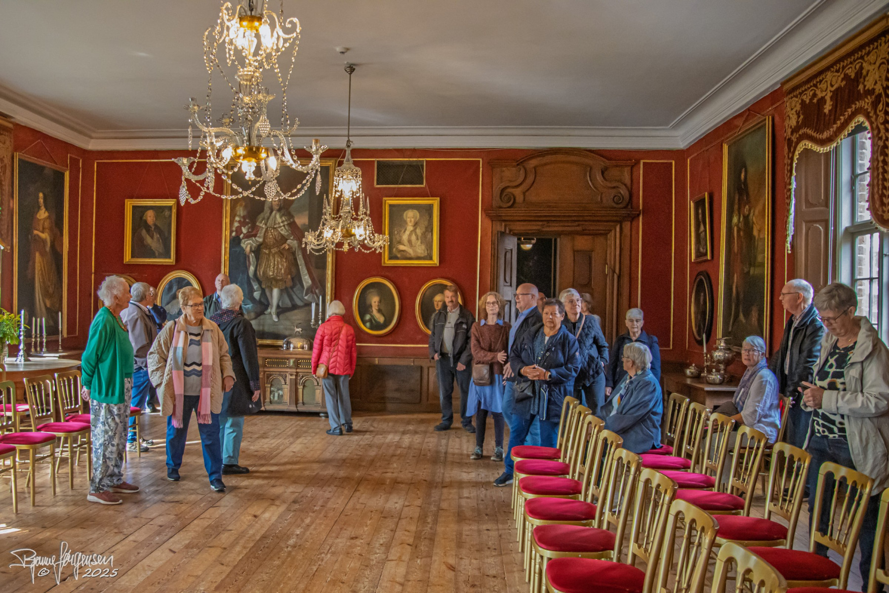Vores rundviser, Sys Ehlers, førte os gennem slottets sale og stuer med gamle gobeliner, gyldenlæder tapet og interiør fra 1700-tallet og mange spændende malerier. Sys fortalte levende om familien Rosenkrantz og slottets spændende historie helt tilbage fra 1500 tallet. Vi fik mange historiske facts, nogle af de hyggelige anekdoter og vi blev “præsenteret” for de mest aktive spøgelser…
