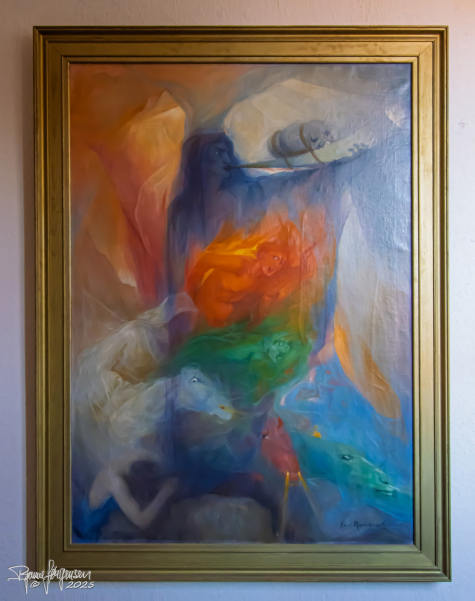 Sys førte os videre gennem Galleriet med alle de spændende værker af maleren Arild Rosenkrantz og fortalte os om baggrunden og tankerne bag.
